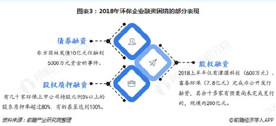企業(yè)面臨融資難題,資金緊張阻礙行業(yè)發(fā)展 在金融“去杠桿”政策環(huán)境下,環(huán)保企業(yè)還面臨著融資周期長(zhǎng)、成本高的難題,各種融資手段難度均較大。2018年,環(huán)保企業(yè)在債券融資、股權(quán)融資、股權(quán)質(zhì)押融資等多個(gè)渠道的融資均不理想。