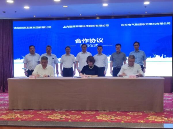 5月15日,上海國惠環(huán)境科技股份有限公司(以下簡稱國惠環(huán)境)與東方電氣集團東方電機有限公司(以下簡稱東方電機)、德陽發(fā)展控股集團有限公司(以下簡稱德陽發(fā)展)在德陽簽訂合作協(xié)議,國惠環(huán)境董事長于寧瑞,東方電機黨委副書記、總經(jīng)理鄢志勇,德陽發(fā)展黨委書記、董事長張星明出席簽約儀式。
