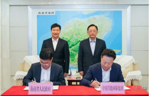1月24日,海南省政府與中國(guó)節(jié)能環(huán)保集團(tuán)有限公司在?诤炇鹕罨瘧(zhàn)略合作框架協(xié)議。省長(zhǎng)劉小明,中國(guó)節(jié)能環(huán)保集團(tuán)有限公司黨委書記、董事長(zhǎng)宋鑫見證簽約。