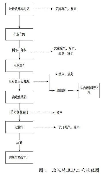 摘要:本文介紹了垃圾站轉(zhuǎn)運(yùn)站生產(chǎn)工藝及污染產(chǎn)生情況,重點(diǎn)描述運(yùn)行過(guò)程中惡臭氣體產(chǎn)生的來(lái)源、危害以及如何減少對(duì)周圍環(huán)境的影響,并介紹了物理吸附法、化學(xué)洗滌法、燃燒法、生物處理法等幾種常見(jiàn)廢氣處理技術(shù)并加以比較,為未來(lái)垃圾轉(zhuǎn)運(yùn)站廢氣有效處理提供理論參考和依據(jù)。 城市建設(shè)發(fā)展速度快,城市垃圾的消納處理矛盾也日益突出,垃圾轉(zhuǎn)運(yùn)站的建設(shè)不僅有利于垃圾集中、統(tǒng)一、規(guī)范和無(wú)害化處理,也有利于改善環(huán)境臟、亂、差現(xiàn)狀,同時(shí)也滿足人們對(duì)生活環(huán)境水平的提高。垃圾轉(zhuǎn)運(yùn)站的日常運(yùn)行必定會(huì)對(duì)周圍環(huán)境造成一定的影響,其中主要的影響為垃圾產(chǎn)生的惡臭氣體。惡臭氣體主要包括氨、硫化氫和甲硫醇、三甲胺等脂肪族類物質(zhì),其成分較為復(fù)雜,如何采取有效措施處理惡臭氣體,是每一個(gè)垃圾轉(zhuǎn)運(yùn)站需要考慮的問(wèn)題。 1 垃圾轉(zhuǎn)運(yùn)站工藝分析 現(xiàn)大部分垃圾轉(zhuǎn)運(yùn)站都是全自動(dòng)化操作,主要使用上投料式轉(zhuǎn)運(yùn)站方式,垃圾收集車輛到達(dá)轉(zhuǎn)運(yùn)站后,將垃圾全部卸入投料坑中,在液壓裝置巨大的作用力下,將垃圾壓實(shí),壓實(shí)后垃圾通過(guò)運(yùn)輸車輛拉運(yùn)到填埋廠進(jìn)行填埋,或去垃圾焚燒發(fā)電廠進(jìn)行焚燒發(fā)電。垃圾轉(zhuǎn)運(yùn)站可實(shí)現(xiàn)零散垃圾的收集,減小垃圾體積,有效降低運(yùn)輸成本,是治理城市生活垃圾污染環(huán)境的必不可少的設(shè)施。具體工藝見(jiàn)如下流程圖見(jiàn)圖1。
