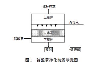 摘要:介紹了電鍍生產(chǎn)工藝過程中產(chǎn)生廢氣污染物的種類以及末端減少污染物排放的基本途徑,分析了各類污染物的常用凈化處理方法與應(yīng)用實(shí)例,供開展電鍍工藝廢氣治理的人員交流探討。 引言 電鍍生產(chǎn)工藝過程中會(huì)產(chǎn)生種類多樣的工藝廢氣,主要包括鉻酸霧廢氣、含氰化物廢氣、含氟廢氣、硫酸霧廢氣、氯化氫廢氣、氮氧化物廢氣和堿性廢氣。其中鍍件前處理的酸洗去銹、堿洗除油會(huì)產(chǎn)生大量酸堿廢氣;鍍鉻、鉻酸陽(yáng)極化以及陽(yáng)極化、磷化填充過程中產(chǎn)生大量鉻酸霧廢氣;含氰電鍍過程中產(chǎn)生氰化物廢氣;化學(xué)法退除不良鍍層時(shí)產(chǎn)生酸性或堿性廢氣。 電鍍廢氣對(duì)環(huán)境和人類健康造成巨大威脅,須及時(shí)處理處置,從末端控制和治理角度考慮,各類廢氣污染物的控制一般從控制廢氣污染物逸出量和采取凈化治理設(shè)施兩方面采取措施。 1 控制廢氣污染物逸出量 在一些工藝槽溶液中投加一些表面活性劑,利用表面活性劑的發(fā)泡性,達(dá)到抑制酸霧等污染物的逸出量,也可在溶液表面加入一層塑料空心球起到阻擋酸霧逸出的作用。 1.1 酸洗霧的抑制 鋼鐵件的酸洗通常采用鹽酸和硫酸,銅件的酸洗多采用硝酸與硫酸的混合酸,對(duì)于酸洗產(chǎn)生的酸霧,在不影響操作時(shí),可以在槽液表面加入一層塑料空心球起到阻擋酸霧逸出的作用。 對(duì)于加溫的硫酸槽液,由于溶液的粘度較大且溫度較高,加入少量十二烷基硫酸鈉,利用酸洗時(shí)產(chǎn)生的氫氣及其攪拌作用,能在溶液表面產(chǎn)生較厚的泡沫,從而起到較好的抑制酸霧作用。 室溫環(huán)境下用鹽酸退鋅、退鎘鍍層時(shí),由于會(huì)產(chǎn)生較多氣泡,攪拌作用較強(qiáng),因此加入少量十二烷基硫酸鈉也可起到較好的抑制酸霧作用。 在用混酸對(duì)銅件進(jìn)行酸洗或進(jìn)行工件退銅、退鎳處理時(shí),會(huì)產(chǎn)生大量氮氧化物,此時(shí)在溶液中投加少量尿素,可起到化學(xué)抑制作用。 1.2 鉻酸霧的抑制 鍍鉻的電流效率低,在生產(chǎn)過程中產(chǎn)生大量氫氣和氧氣。由于鍍液的表面張力大,氫氣氣泡和氧氣氣泡逸出時(shí)帶有大量能量,液面破裂時(shí),把液膜劇烈地撕裂分散成極細(xì)的霧飛濺到大氣環(huán)境中。在鍍鉻槽液加溫過程中,會(huì)有溶液蒸發(fā),此時(shí)帶出大量鉻酸,形成鉻酸霧。鉻酸霧的抑制通常在槽液表面加一層耐鉻酸的聚乙烯或聚氯乙烯空心塑料球,起到抑制鉻霧的作用。此法用于鍍硬 鉻時(shí)較有效,對(duì)于頻繁進(jìn)出槽的裝飾性鍍鉻效果不好。 2 電鍍工藝廢氣凈化處理 按污染物的性質(zhì),凈化處理設(shè)備大致分為三類,即鉻酸霧凈化處理裝置、含氰廢氣凈化處理裝置和酸性廢氣凈化處理裝置。 2.1 鉻酸霧凈化處理裝置 鉻酸具有比重大、揮發(fā)性小、容易凝聚的特點(diǎn),一般采用網(wǎng)格式凈化器對(duì)鉻酸霧凈化,該凈化器由8~12 層有菱形網(wǎng)孔的厚0.5 mm 的硬聚氯乙烯塑料板縱橫交錯(cuò)平鋪而成。 當(dāng)鉻酸液滴隨槽邊抽風(fēng)罩收集進(jìn)入排風(fēng)管尚未達(dá)到凈化器中過濾網(wǎng)格柵時(shí),由于凈化器箱體截面積比風(fēng)管截面積大,氣流速度降低,已經(jīng)因碰撞而變化的鉻酸液滴在重力作用下不能繼續(xù)前進(jìn)而從氣流中分離出來。剩余鉻酸廢氣經(jīng)過濾網(wǎng)格柵時(shí),被分散并經(jīng)過許多狹窄彎曲的通道,增加了相互碰撞變大的機(jī)會(huì),此時(shí)在吸附與重力作用下,細(xì)小鉻霧滴附著在網(wǎng)格表面,并不斷凝聚變大凝成液滴,最后從網(wǎng)格上降落下來。分離出來的鉻酸沿排液管流入集液箱,按危險(xiǎn)廢物儲(chǔ)存并由資質(zhì)單位處置。凈化后的氣體經(jīng)風(fēng)機(jī)達(dá)標(biāo)排放,凈化裝置示意見圖1。