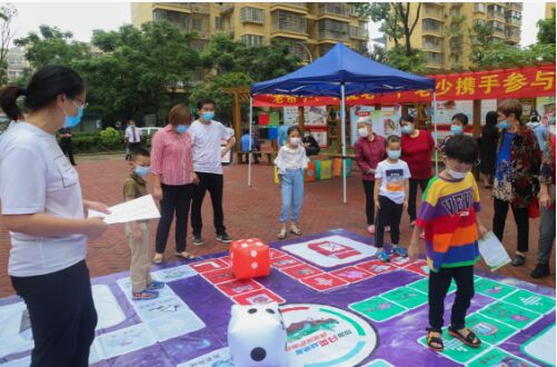 社區(qū)小朋友也在家長(zhǎng)們的帶領(lǐng)下積極參加垃圾分類(lèi)趣味活動(dòng)