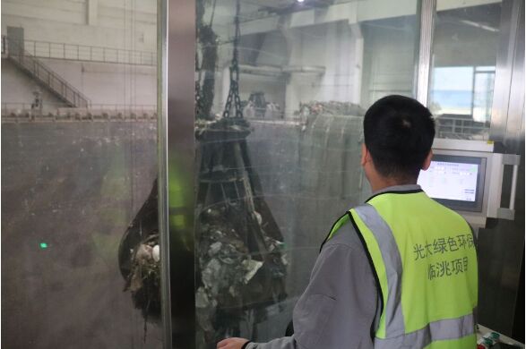 透過面前的超大落地玻璃,他可以清晰地看到,一個深度近30米的大型垃圾倉里,堆放著各式各樣的生活垃圾。操縱手柄,按動按鍵,李景峰靈活地控制著懸掛在深坑里的垃圾吊抓斗,發(fā)酵好的垃圾被他遠程抓取后,投入焚燒爐焚燒處理。垃圾焚燒產生的電能通過配電裝置被送入電網,搖身變?yōu)槌鞘杏秒姟?/p>