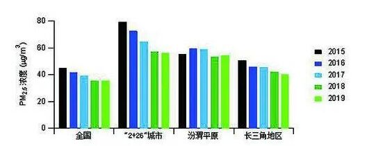空氣質(zhì)量改善成效 經(jīng)過多年持續(xù)努力,全國空氣質(zhì)量總體改善,重點區(qū)域明顯好轉(zhuǎn),人民群眾的藍天獲得感顯著增強。 2013年以來,中國在經(jīng)濟持續(xù)增長、能源消費量持續(xù)增加的情況下,環(huán)境空氣質(zhì)量總體改善。2019年,全國PM2.5平均濃度較2015年下降了20%。重點區(qū)域PM2.5濃度和重污染天數(shù)大幅減少,以京津冀及周邊地區(qū)“2+26”城市為例,2019年P(guān)M2.5濃度較2015年下降28%,重污染天數(shù)減少45%,以PM2.5為首要污染物的天數(shù)下降了44%;北京市PM2.5濃度由81微克/立方米下降到42微克/立方米,重污染天數(shù)由43天下降至4天。 各種治理措施的成效也體現(xiàn)在PM2.5組分濃度的變化趨勢上。以京津冀及周邊地區(qū)“2+26”城市為例,2018–2019年秋冬季,區(qū)域內(nèi)PM2.5中主要組分濃度均比2016–2017年秋冬季下降,其中有機物和硫酸根離子降幅最大,分別達到31%和42%,說明燃煤治理取得顯著成效。