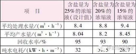 產(chǎn)生不同含鹽量的濃縮液運(yùn)行電耗見表2。