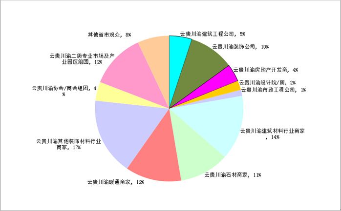 為期三天的精彩行業(yè)盛會,吸引了來自四川、重慶、云南、貴州、西安等省市建筑工程公司3420人,裝飾公司6827人,房地產(chǎn)開發(fā)商2678人、設(shè)計院/所1726人,市政工程公司928人,建筑材料行業(yè)商家9862人,石材商家7492人,暖通商家8398人,其他裝飾材料行業(yè)商家11789人,協(xié)會/商會組團2874人,二級專業(yè)市場及產(chǎn)業(yè)園區(qū)組團8358人,其他省市觀眾4763人,本屆建博會共吸引了69115名專業(yè)人士到場參觀洽談合作,現(xiàn)場直接和間接成交額突破6億元。