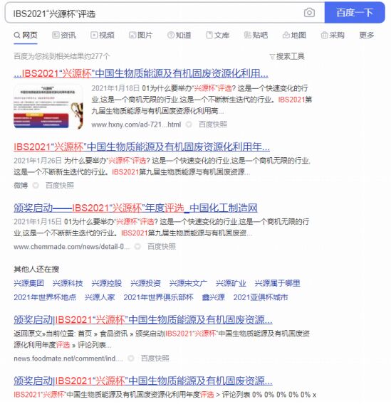 IBS2021“興源杯”中國生物質(zhì)能源及有機固廢資源化利用年度評選自份上線一個多月以來,相繼得到(包括國際能源網(wǎng)、北極星電力網(wǎng)、第一環(huán)保網(wǎng)、環(huán)保在線、中國農(nóng)機網(wǎng)等)80余家行業(yè)媒體的爭相報道,權(quán)威媒體多方位、多角度對大會及“興源杯”評選進行推廣,更具公信力、品牌形象更有說服力!